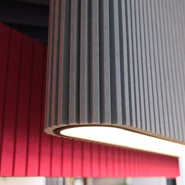 Overhead lights are situated perfectly to absorb sound, and now they can. Acoustic lighting by Impact Acoustic is made of the wonderful archisonic felt, available in all 32 colors, with 10 luminaires to choose from.