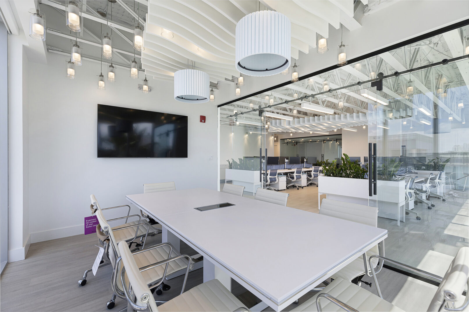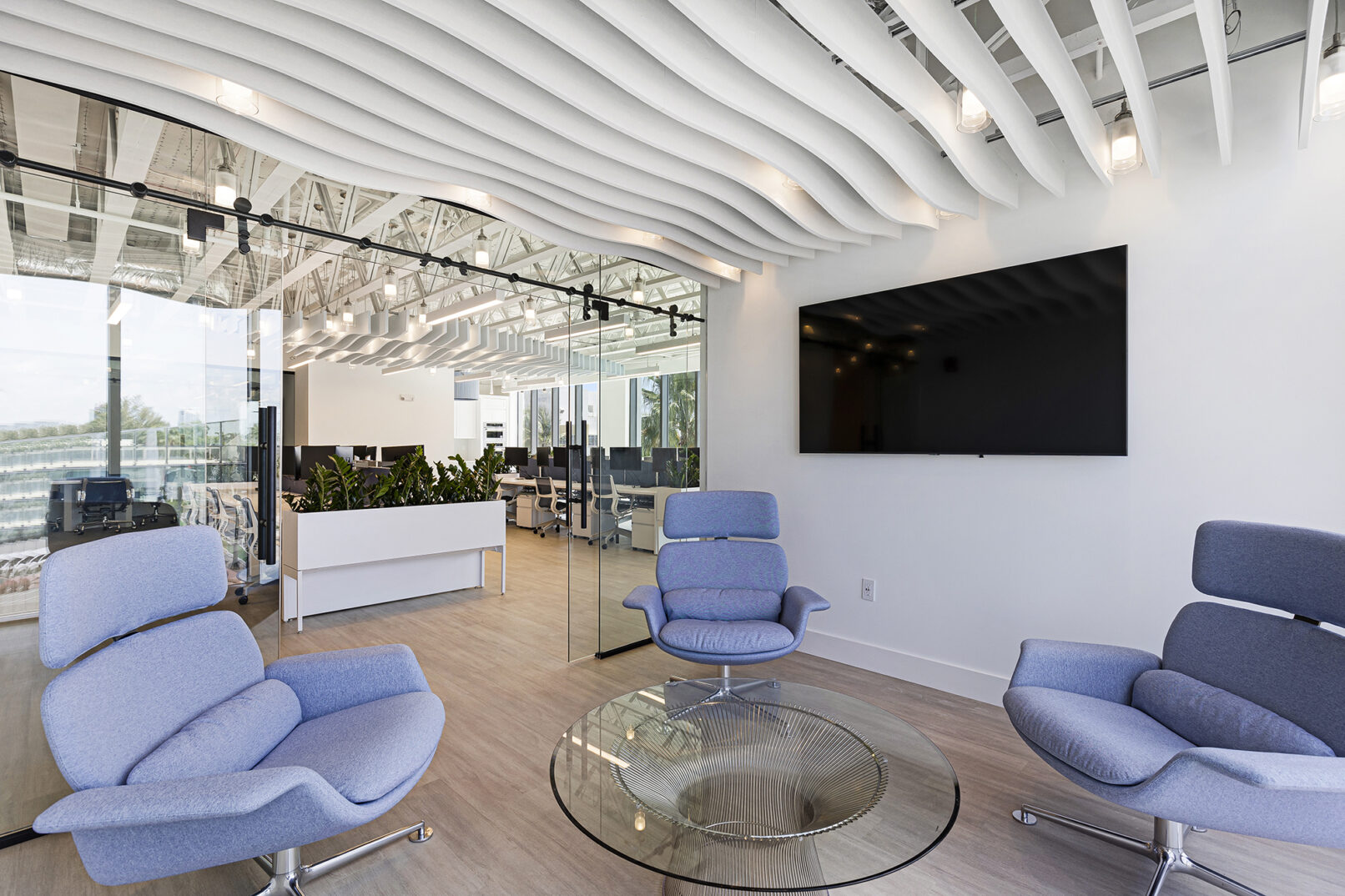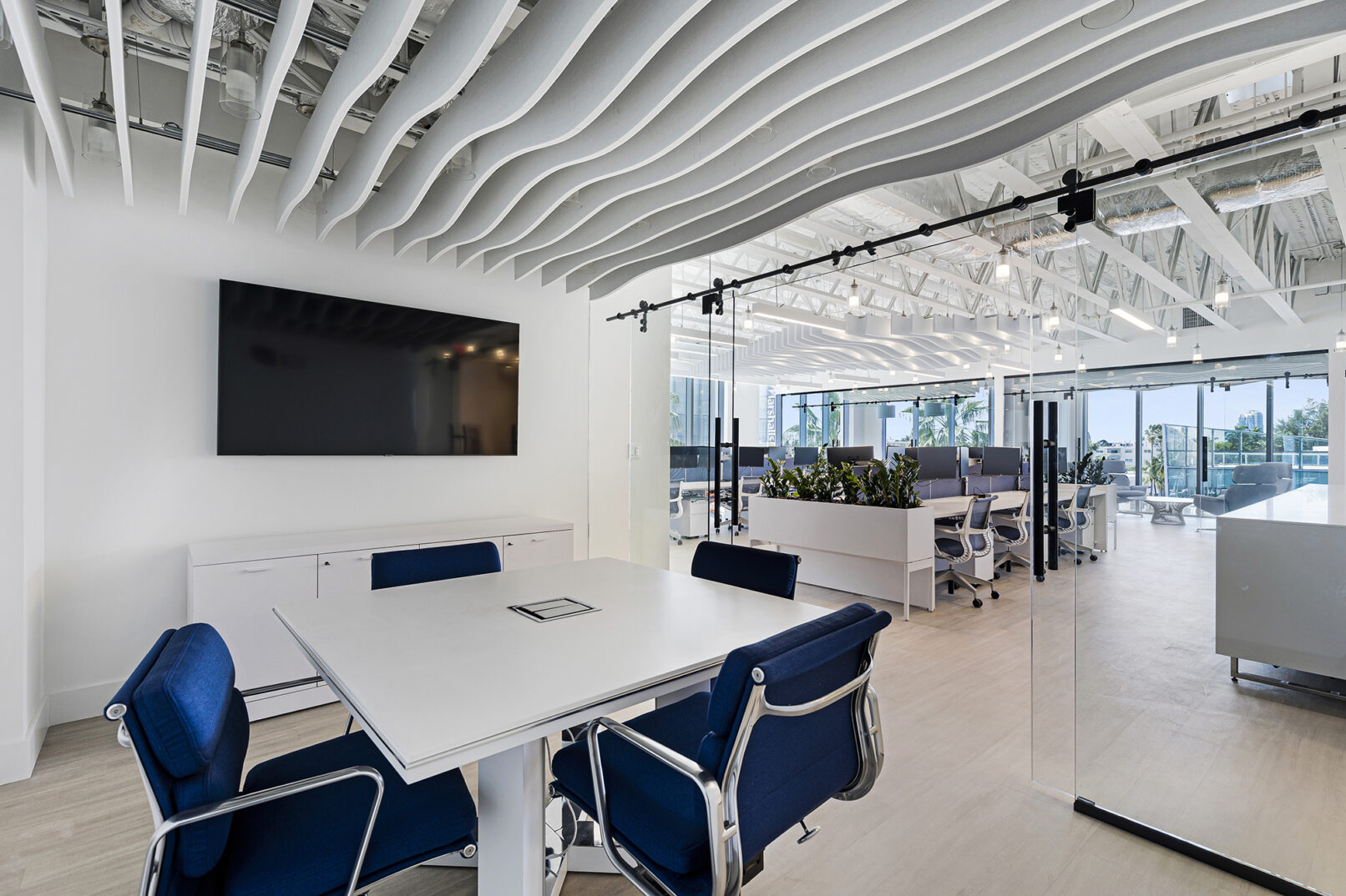 The newly designed office space for JSB Capital Group in Miami is a shining example of acoustic material integrated early into the design. With a focus on creating an open and bright environment, filling every corner with natural light through the incorporation of sleek glass partitions, the space faced an acoustic challenge that would risk productivity and focus. At Habitat Matter we love a good acoustic challenge, and this was no exception!
