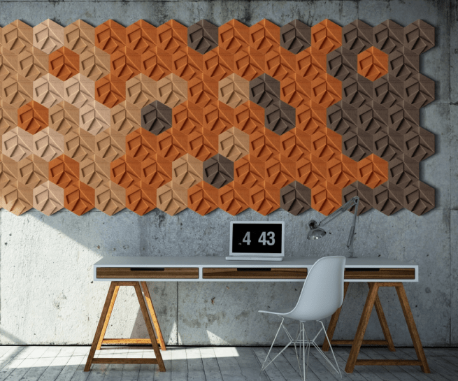 Lightweight and modular, the cork acoustic panels are easy to install. They come in a wide range of colors and shapes, which can be used to cover entire wall surfaces or arranged in smaller configurations as functional wall art.