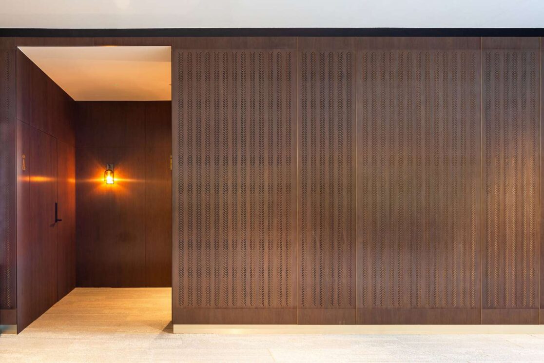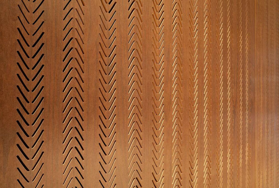 The Sofia Hotel project features the Obersound wood veneer collection with acoustic perforations in Jersey and Bark designs.
